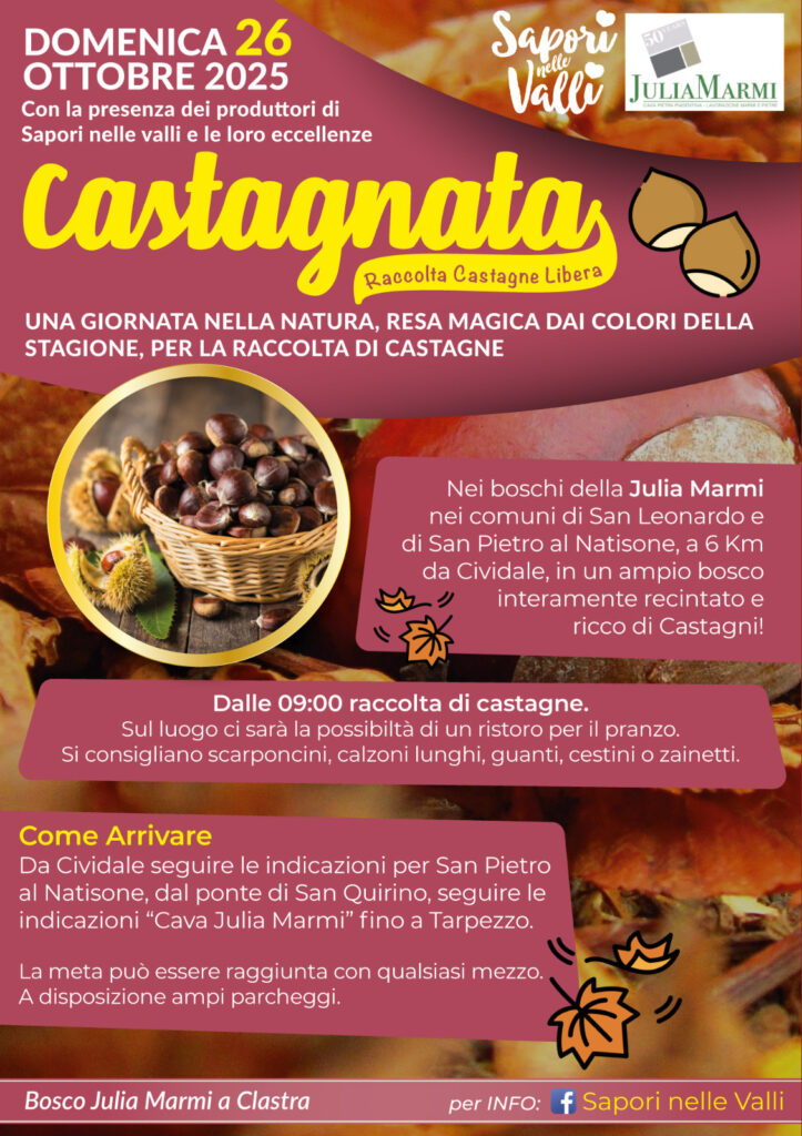 Anche quest’anno ALPI parteciperà alla castagnata organizzata dalla nostra socia Francesca e famiglia. Sarà un’ottima occasione per stare assieme, respirare aria buona, fare attività fisica e godere del meraviglioso ambiente delle Valli del Natisone, nel pieno del loro splendore autunnale.